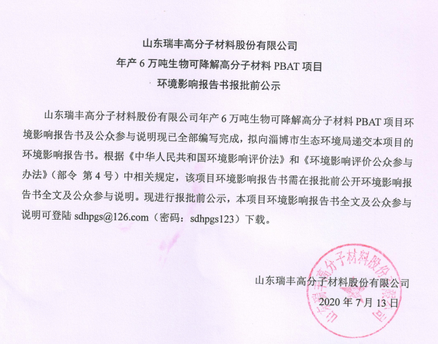 好博在线官网年产6万吨生物可降解高分子材料PBAT项目环境影响报告书报批前公示